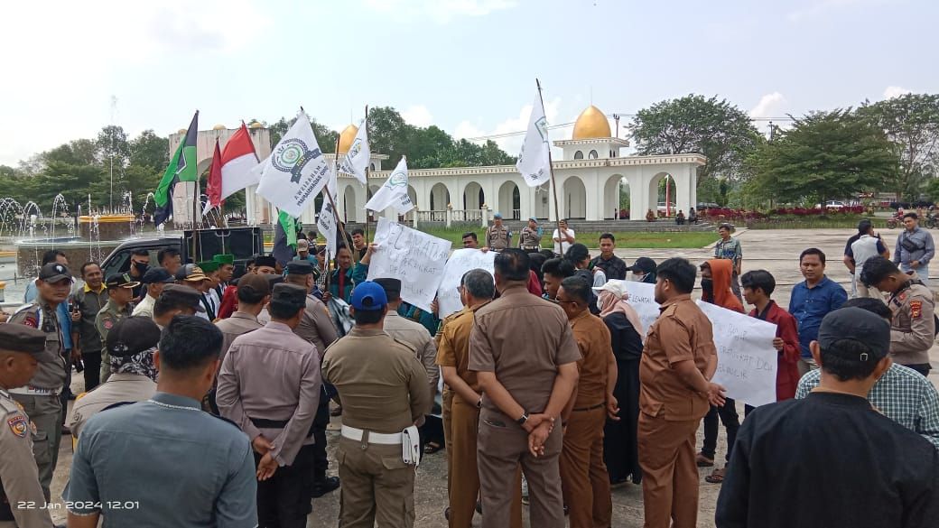 Terkait dugaan penyalah gunaan wewenang dan persekongkolan Bupati Rokan Hilir Afrizal Sintong dan Kepala Dinas Pemberdayaan Masyarakat Desa (PMD) Rokan Hilir Yanra dan direktur PT. Bali Cemerlang Indonesia Lilis Astuti terkait pungutan biaya.