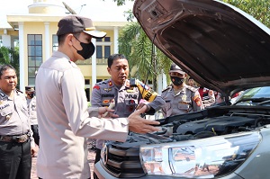 Seluruh kendaraan bermotor, peralatan pengendalian massa (Dalmas) dan senjata api (senpi) dilakukan pengecekan di Mapolres Rokan Hilir (Rohil) Selasa.