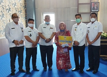 Bupati Rokan Hilir (Rohil), Afrizal Sintong menyerahkan bantuan uang duka dari Kementrian Sosial RI.
