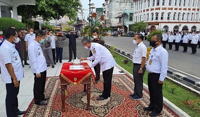 Bupati Rokan Hilir (Rohil) Afrizal Sintong mengukuhkan 590 pejabat yang terdiri dari pejabat pimpinan tinggi.