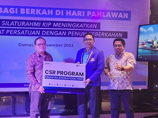 Krakatau International Port (KIP) Dumai memberikan santunan, untuk anak yatim dari panti asuhan Almunawarah, di Hotel The Zuri Dumai.