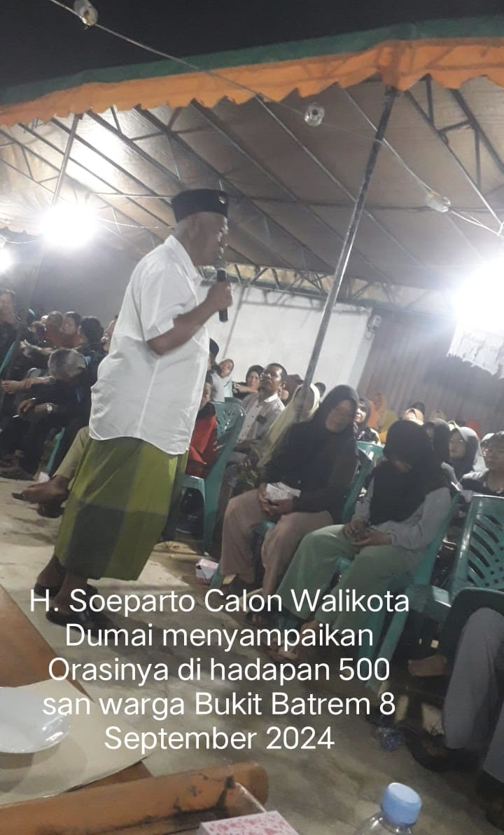 Bukit Batrem Selasa malam 8 Oktober 2024 kubu pasangan calon No.2 Ferdiansyah - H.Soeprapto mengadakan kampanye di Kelurahan Bukit Batrem Zona 1 Jl. Arifin Ahmad dihadiri sekitar 500 san orang..