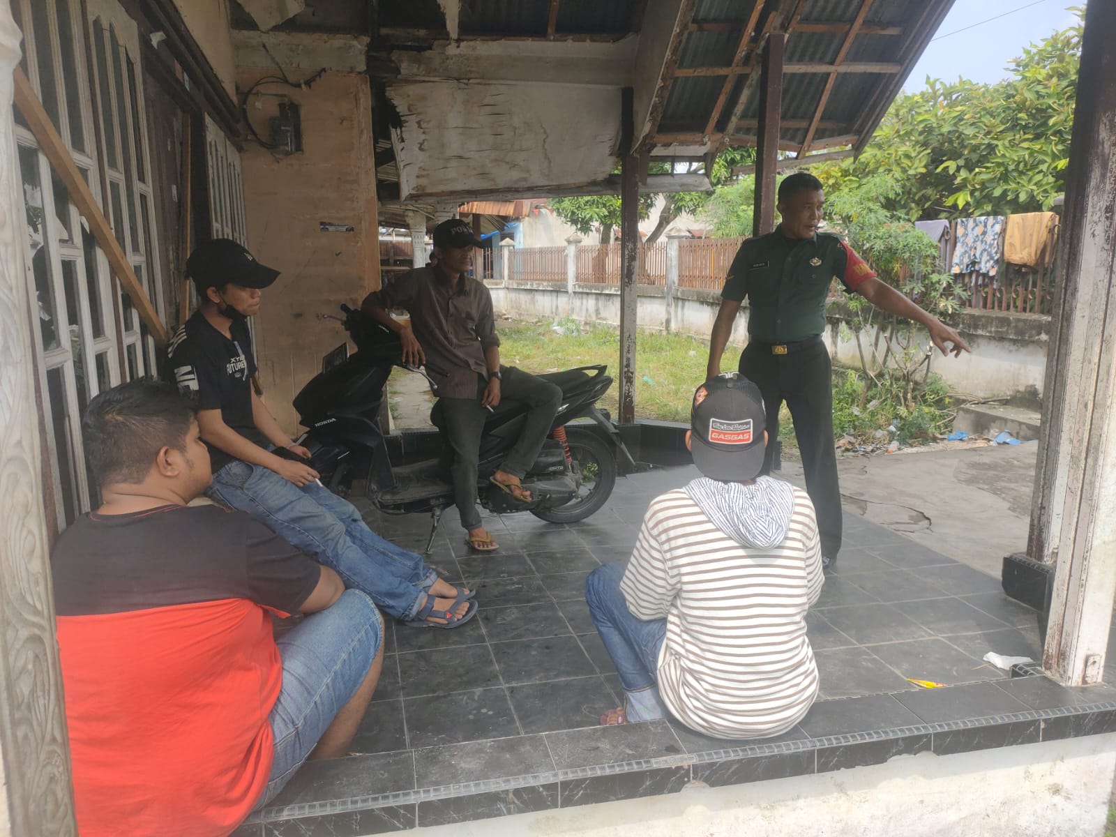 Anggota Koramil 08/Rumbai Barat Kodim 0301/Pekanbaru, Serda Dodimen melaksanakan kegiatan komunikasi sosial dengan masyarakat di Kampung Pancasila di Jalan Tengku Maharani RT 01 RW 10 Kelurahan Maharani Kecamatan Rumbai Barat, Selasa.