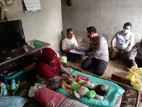 Wujud Empati dan Peduli Terhadap Sesama, Polsek Tualang Bantu Anak Penderita Hidrosefalus