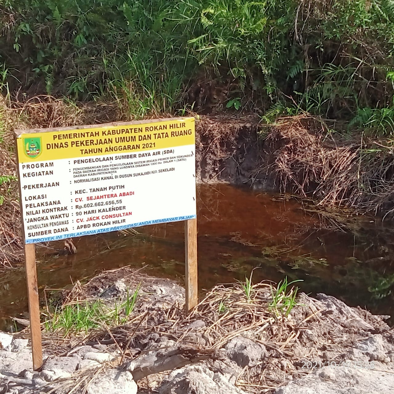 Rokan hilir, mimbarnegeri.com. Soal Proyek Dinas Pekerjaan Umum dan Tata Ruang (PU-TR) Kabupaten Rokan Hilir Tahun Anggara 2021 Jenis Proyek Normalisasai Kanal lokasi Dusun Sukajadi Kepenghuluan Sekeladi Kecamatan Tanah Putih Kabupaten Rokan Hilir dana yang digelontorkan untuk proyek tersebut sebesar Rp.602 juta, sumber dana APBD murni Rokan Hilir.