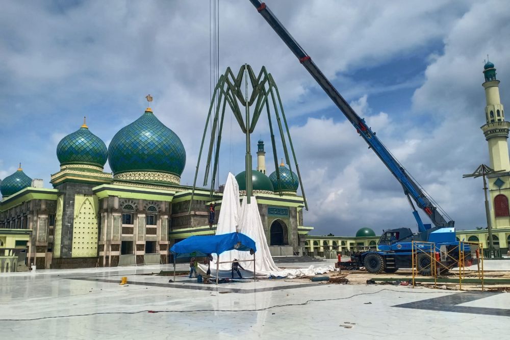 PEKANBARU - PT Bersinar Jesstive Mandiri, kontraktor pembangunan payung elektrik di kawasan Masjid Raya Annur berjanji akan menuntaskan pekerjaan, disisa 50 hari masa waktu perpanjangan proyek.
