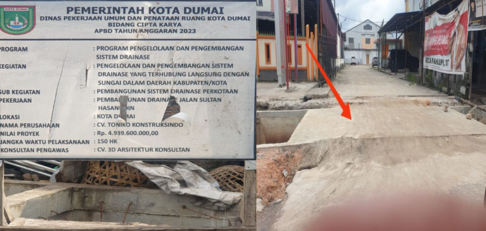 Bahwa drainase lama Jl. Sultan Hasanudin yang tidak dikerjakan tersebut menjadi tanda tanya kalangan netizen apakah drainase lama Jl. Sultan Hasanudin sepanjang 60 meter itu tidak termasuk dalam kontrak kerja Program Pengelolaan Pengembangan Sistim Drainase, yang terhubung langsung dengan Sungai dalam Daerah Kabupaten/kota Pembangunan Sistem Drainase Perkotaan APBD Dumai TA 2023 perlu adanya penjelasan Bidang Cipta Karya Dinas PU-PR Kota Dumai.