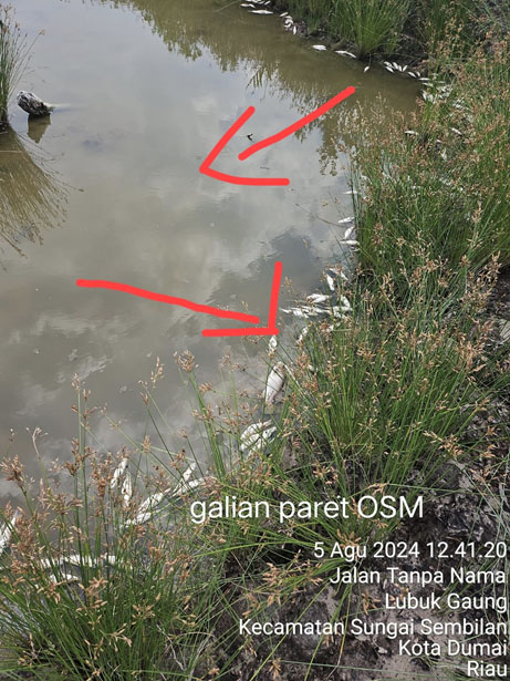 “bahwa ePP dalam jumlah besar mengendap, bisa jadi mengandung racun, sehingga ikan yang ada disekitar lokasi penimbunan ePP tersebut keracunan, mengakibatkan ribuan ikan mati dari berbagai jenis, ikan kakap, belanak dan jenis ikan lainnya terapung dan membusuk dilokasi bekas galian yang dijadikan dumping ePP, ditemukan warga nelayan Senin 5 Agustus 2024.
