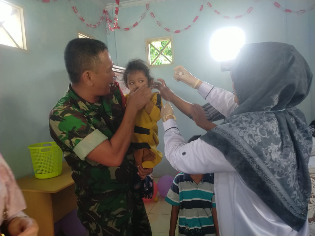"Kegiatan yang dilaksanakan ini sebagai bentuk kepedulian Babinsa selaku aparat Teritorial terhadap masyarakat di wilayah binaan, khususnya bagi kesehatan anak balita," ujarnya.