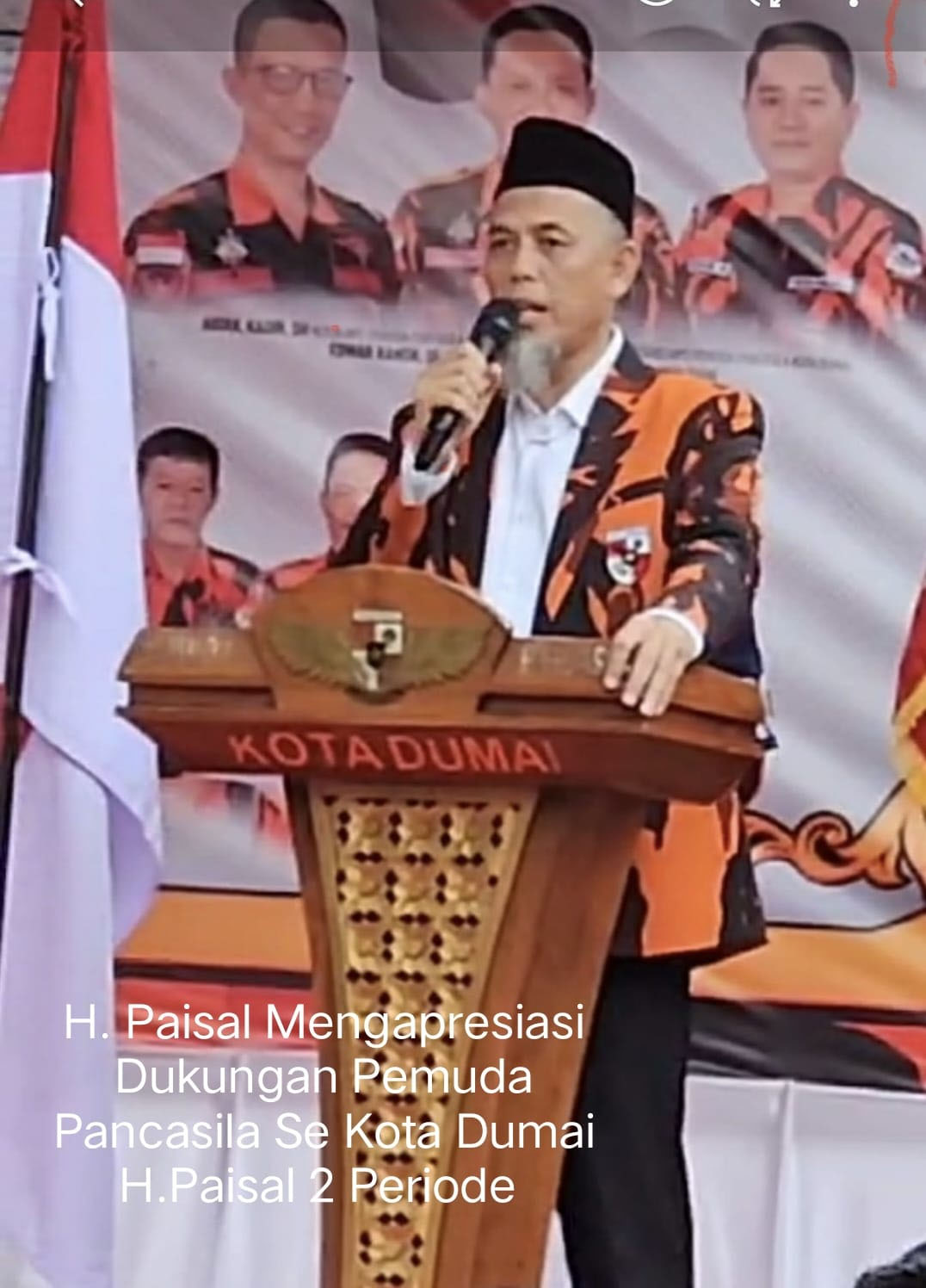 H. Paisal dalam sambutannya dihadapan ratusan kader Pemuda Pancasila mengapresiasi atas sikap yang disampaikan mendukung H. Paisal 2 (dua) periode untuk melanjutkan kepemimpinan kota Dumai bahwa kontribusi para pemuda sangat besar membangun kota Dumai