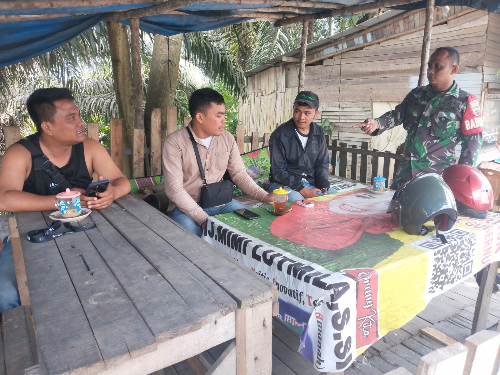 Terlihat Serda Fretriadi membaur bersama warga sambil menikmati sarapan pagi dan ngopi bersama membahas tentang pos kamling.