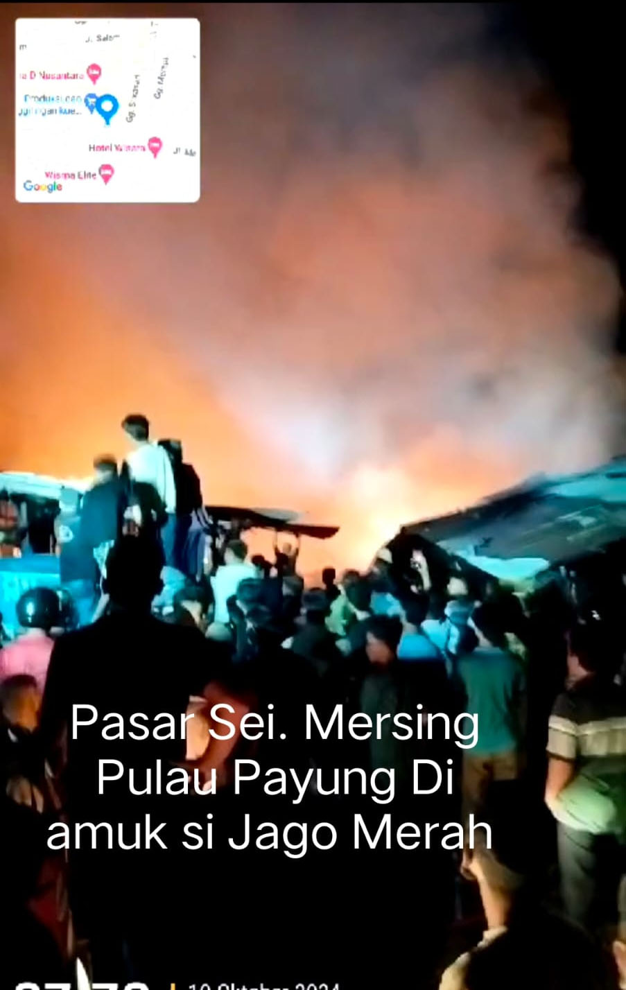 Dumai, Mimbar Negeri com --|| Puluhan kios Pasar Sri Mersing Pulau Payung Dumai ludes di amuk si Jago Merah. Peristiwa kebakaran ini terjadi Kamis malam 10 Oktober 2024 sekitar pukul 23.30 Wib setelah kejadian kebakaran barulah muncul pasukan Damkar.