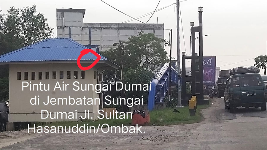 Contoh penyebab banjir Jl. Teduh Kelurahan Pangkalan Sesai dan sekitarnya ada 3 (tiga) titik infrastruktur pintu air Sungai Dumai yang tidak dilengkapi dynamo sebagai penggerak hydrolik, membuka dan menutup pintu air, bisa saja menjadi penyebab terjadinya banjir “kotak dynamo pintu air pajangan” alias formalitas sehingga ketika air pasang laut meluap ke rumah rumah warga disekitar Jl. Syeh Umar dan Jl. Budi Kemuliaan warga hanya bisa memelas melihat air yang menggenangi rumahnya.