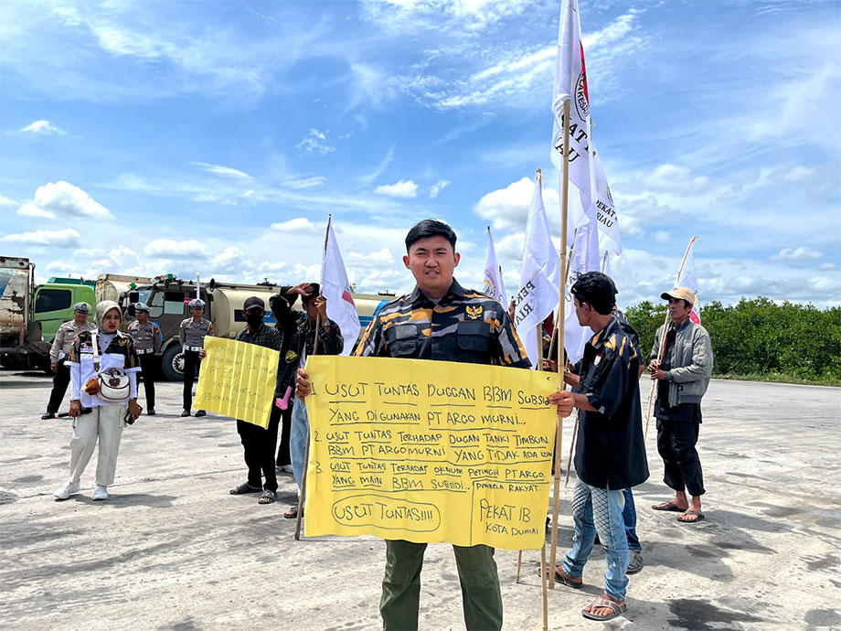 Pantauan dilapangan bahwa ada 4 poin tuntutan DPD Pekat IB Dumai adalah, 1. “Usut tuntas terhadap oknum petinggi yang main BBM”. 2. “Usut tuntas dugaan BBM subsidi yang digunakan PT. Agro Murni”. 3. “Usut tuntas terhadap dugaan tangki timbun BBM PT. Agro Murni yang tak punya izin”. 4. “Usut tuntas terhadap oknum petinggi PT. Agro Murni yang main BBM subsidi”.