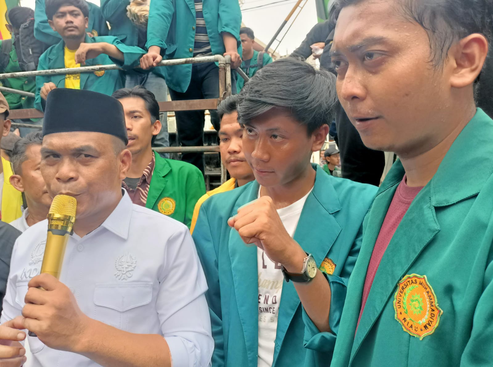 “Atas nama DPRD Provinsi Riau, kami mengapresiasi kedatangan rekan-rekan mahasiswa yang menyampaikan aspirasinya dengan tertib dan kondusif. Apa yang menjadi tuntutan akan kami tindaklanjuti dan kami sampaikan ke pusat,” ujar Kaderismanto di hadapan massa.