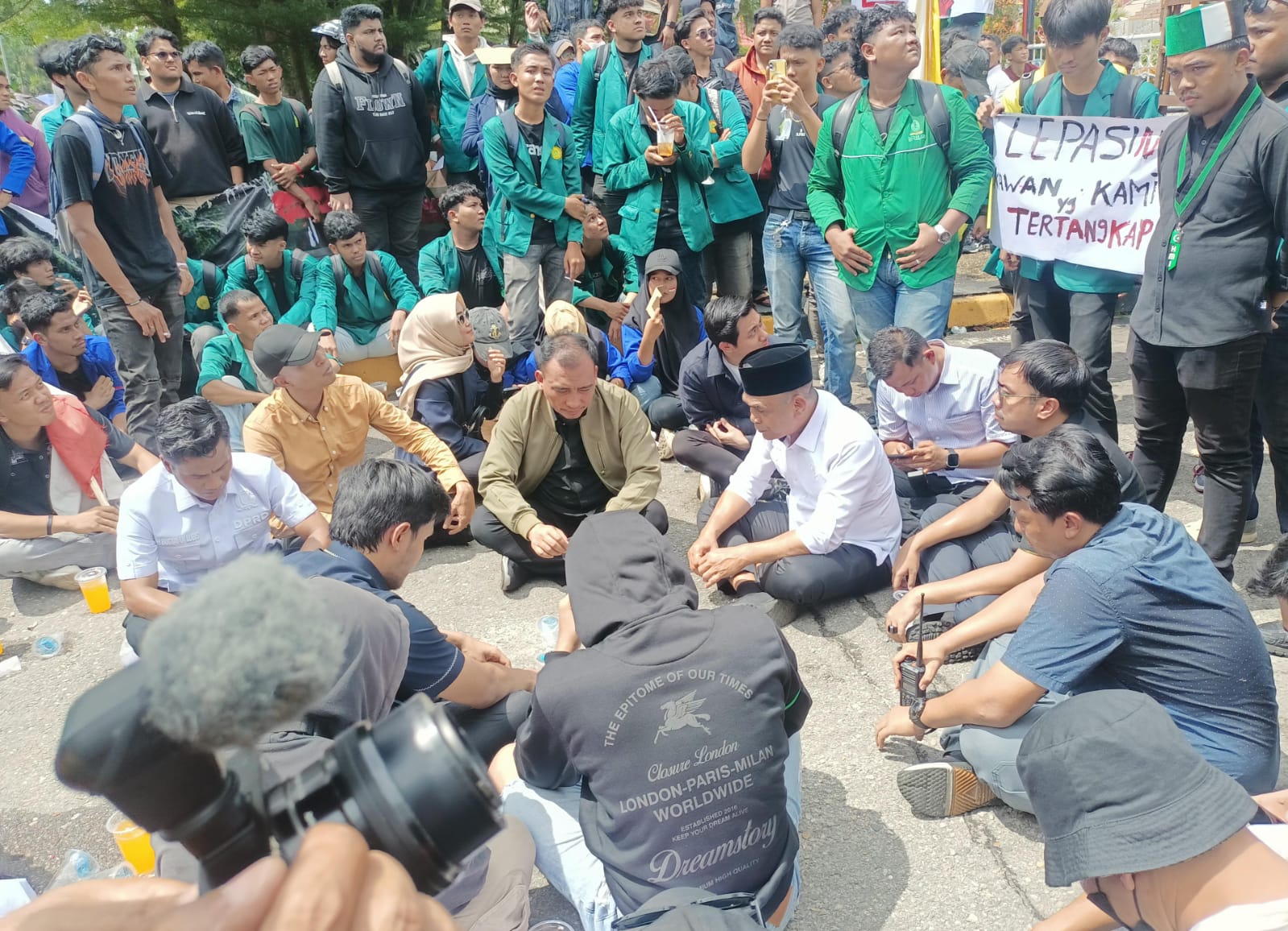Dialog Tanpa Sekat, Ketua DPRD Riau Duduk di Aspal Bareng Mahasiswa