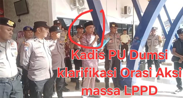 Massa aksi demo meminta tanggapan Kadis PU Dumai Riau Satria Alamsyah. S.T. terkait orasi yang disampaikan Agung. Kadis PU Dumai menyampaikan tanggapan secara singkat bahwa kegiatan tersebut telah dilaksanakan sesuai prosedur “semua proses sudah sesuai SOP Selain Dinas PU ada beberapa instansi lain yang juga terlibat dalam program besar ini” ujarnya singkat.