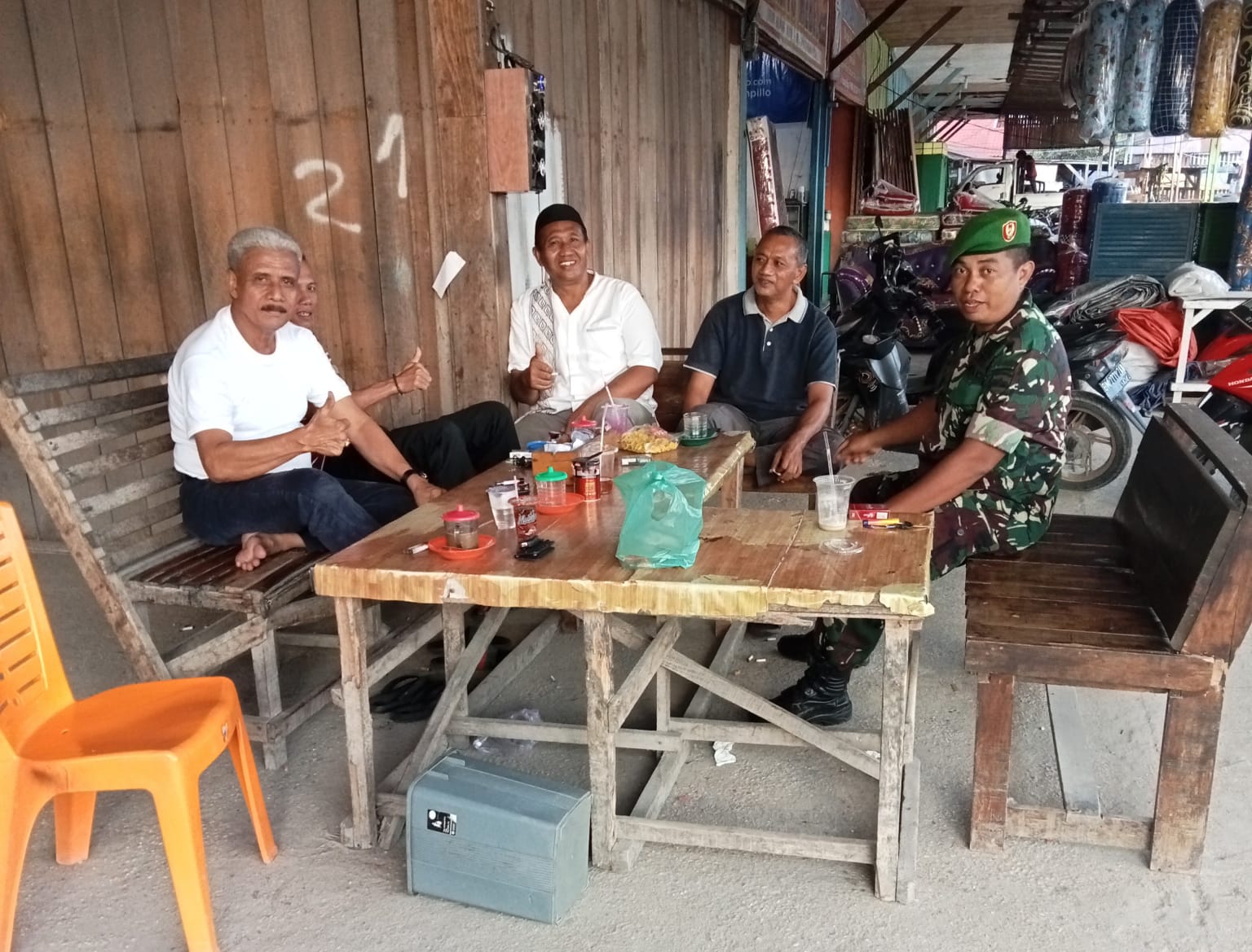 Suasana Santai, Babinsa Serda Beni Komsos dengan Warga Sambil Ngopi