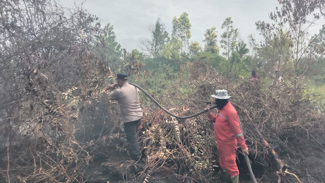 Mereka bekerjasama memantau titik-titik panas, menyemprotkan air ke area rawan, dan memastikan lahan benar-benar dalam kondisi aman.