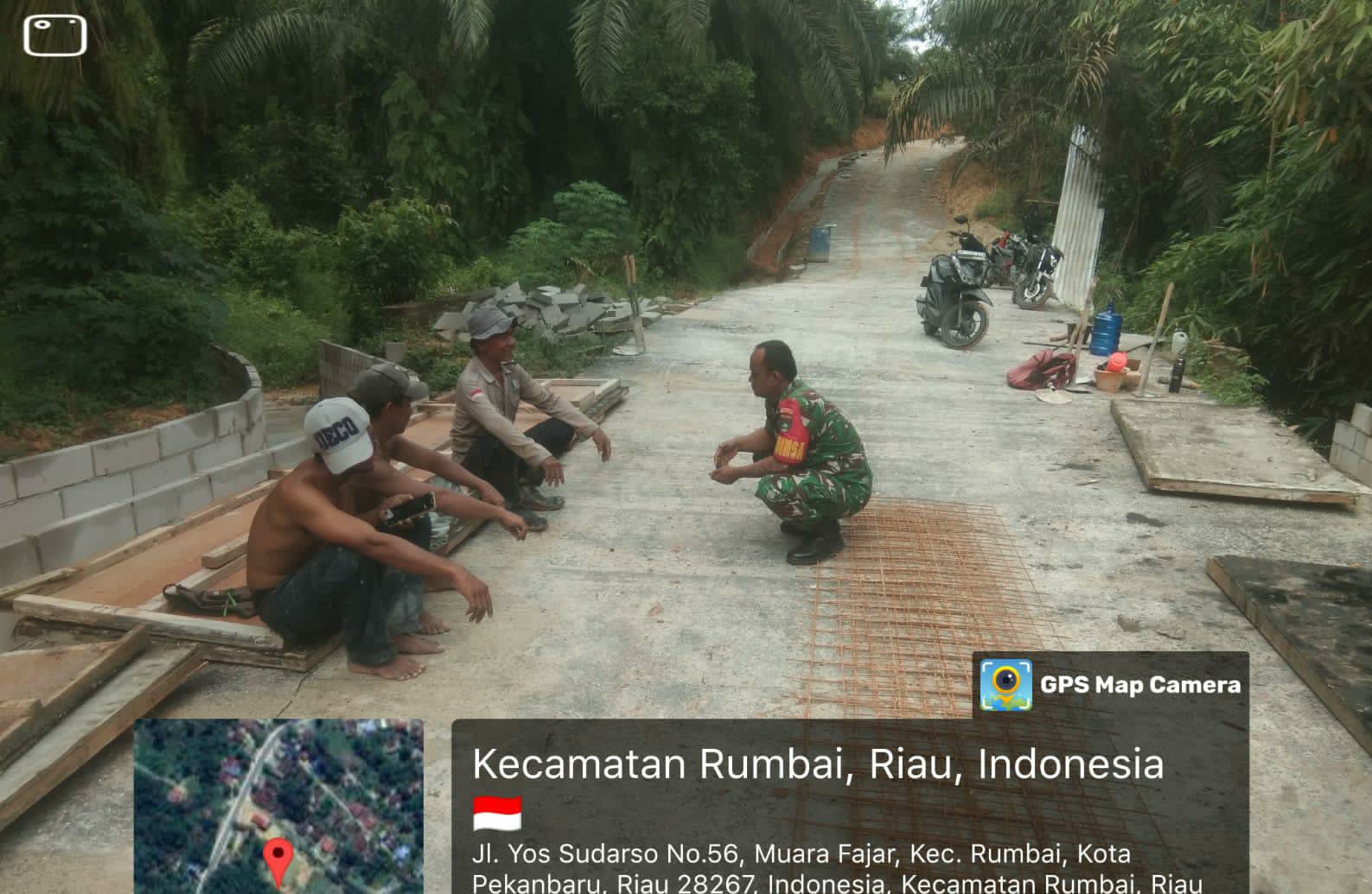 Pekanbaru, Mimbarnegeri.com - Dalam rangka menjaga keamanan wilayah serta memastikan aktivitas masyarakat berjalan dengan aman dan tertib, Babinsa Kelurahan Muara Fajar Barat Koramil 08/Rumbai Barat, Sertu Fretriadi, melaksanakan kegiatan komunikasi sosial (Komsos) bersama para pekerja di Jalan Kalabau RT 02 RW 01, Kecamatan Rumbai Barat, Kota Pekanbaru, Senin (17/11/2025) sekitar pukul 10.50 WIB.
