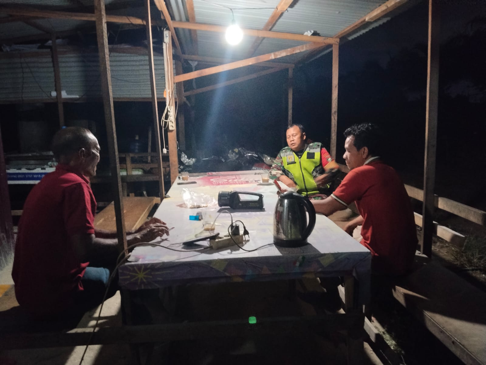 Ronda Malam, Babinsa Sungai Sibam Laksanakan Patroli Keliling dan Komsos Bersama Warga