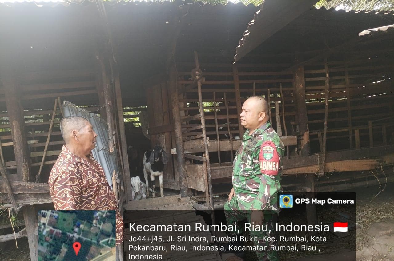 Perkuat Ketahanan Pangan, Babinsa Pelda Novaldi Sambangi Peternak Kambing di Rumbai Bukit dan Beri Pendampingan