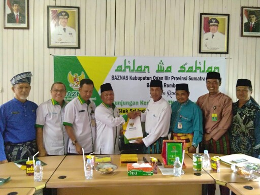 SIAK - Badan Amil Zakat Nasional (Baznas) Kabupaten Ogan Hilir, Sumatera Selatan melakukan kunjungan kerja ke Kabupaten Siak guna mempelajari penerapan Perda zakat dan pola pengelolaan dan pendayagunaan zakat.