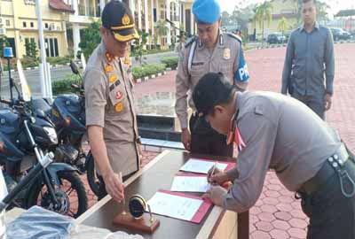 Permudah Pengawasan, Kapolres Rohil Serahkan Kendaraan Roda Dua untuk Polsek