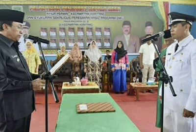 “Pelantikan ini sangat penting dilakukan dalam rangka pelaksanaan pembangunan sesuai dengan program-program daerah yang dicanangkan Pemerintah Kabupaten Inhil,†ujar Bupati dalam sambutannya usai mengambil sumpah jabatan Penjabat Kepala Desa.
