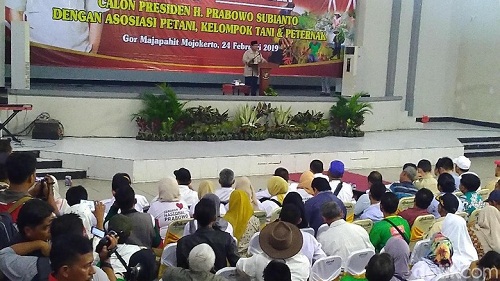 Dialog kebangsaan Prabowo dengan Asosisasi Petani, Kelompok Tani dan Peternak itu digelar di GOR Kesenian Majapahit, Jalan Gajah Mada, Kota Mojokerto. Dalam kesempatan tersebut, perwakilan petani tebu, jagung, padi dan garam menyampaikan aspirasinya secara langsung kepada sang Capres.