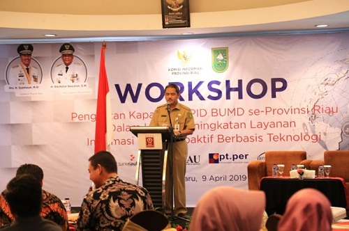 Workshop Penguatan Kapasitas PPID BUMD Se Provinsi Riau mengambil tema “Penguatan Kapasitas PPID BUMD se Provinsi Riau dalam Upaya Peningkatan Layanan Informasi Publik Proaktif Berbasis Teknologiâ€.