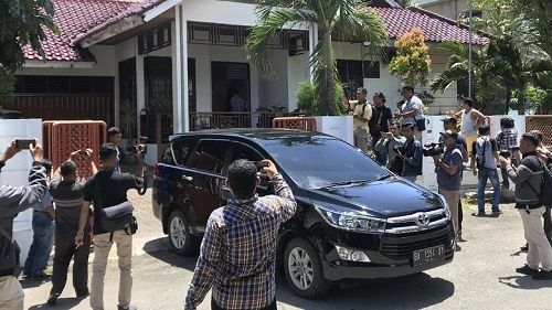Pantauan di lokasi, Jalan Mataram Nomor S 12 Kota Padang, Kamis (25/4/2019), sekitar pukul 11.30 WIB, seorang petugas dengan pengawalan dua polisi bersenjata lengkap meninggalkan lokasi sambil membawa secarik dokumen.