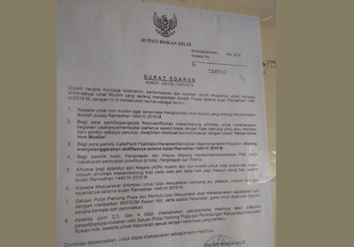 Dalam Surat tersebut dijelaskan Warkop dan Rumah makan tetap buka seperti biasanya selama bulan Ramadan 1440 H/2019 M dengan catatan tidak menutup pintu usahanya atau memakai kain gorden sebagai penutup serta membuat tulisan "Hanya untuk Non Muslim".