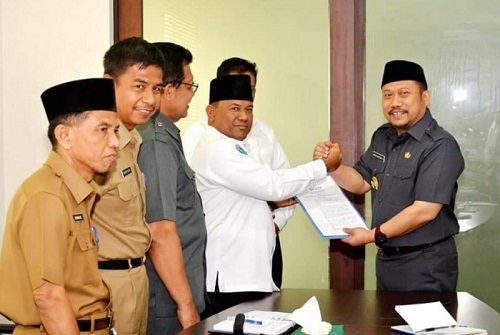 Acara serah terima SK Ketua BNK Kampar yang disaksikan seluruh pengurus BNK Kampar digelar di ruang rapat lantai dua kantor Bupati Kampar, Selasa (7/5/2019).