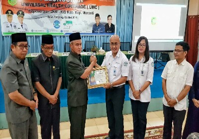 Penghargaan Universal Health Coverage (UHC) diserahkan langsung oleh Siswandi selaku Deputi Direksi Wilayah Riau, Kepulauan Riau, Sumatera Barat, dan Jambi BPJS Kesehatan kepada Wakil Bupati Meranti Drs H Said Hasyim.