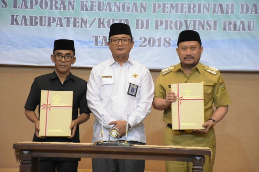 Laporan hasil pemeriksaan atas laporan keuangan pemerintah daerah kabupaten/kota diserahkan di Auditorium Lantai II Gedung Badan Pemeriksa Keuangan Perwakilan Provinsi Riau di Pekanbaru, Senin (27/5/2019).