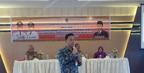 PEKANBARU - Komisi Informasi (KI) Provinsi Riau menghadiri sekaligus memberikan materi di acara sosialisasi Keterbukaan Informasi Publik yang diselenggaarkan oleh PPID utama Kabupaten Rokan Hilir (Rohil), Senin (8/7/2019).