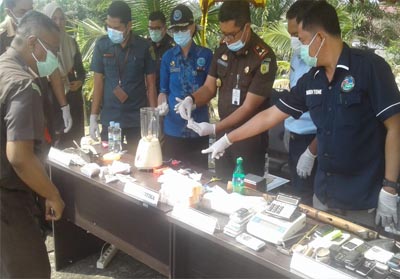 "Untuk barang bukti bukan tanaman dimusnahkan dengan cara dicampur air dan detergen kemudian diblender dan dibuang keselokan. Dan Narkotika bentuk tanaman itu dibakar," ujar Doni.
