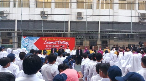 Setelah itu, Muhadjir langsung di antar menuju lapangan sekolah untuk mengikuti Masa Pengenalan Lingkungan Sekolah (MLPS). Muhadjir juga akan memberikan sambutan di hadapan para guru dan murid.